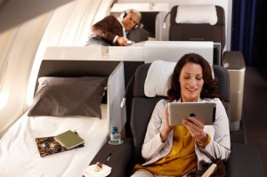 The designs also feature stunning hardwood floors and plush leather seating areas, including fully reclining chairs. Sleek black and white accents complete the design, which also incorporate luxurious wraparound sofas and a two-person bed. Touchscreen technology will play a key role in the future of luxury aviation, with windowpanes doubling as infotainment controls. Soothing, glowing blue aquariums add another superfluous touch to the design concept.